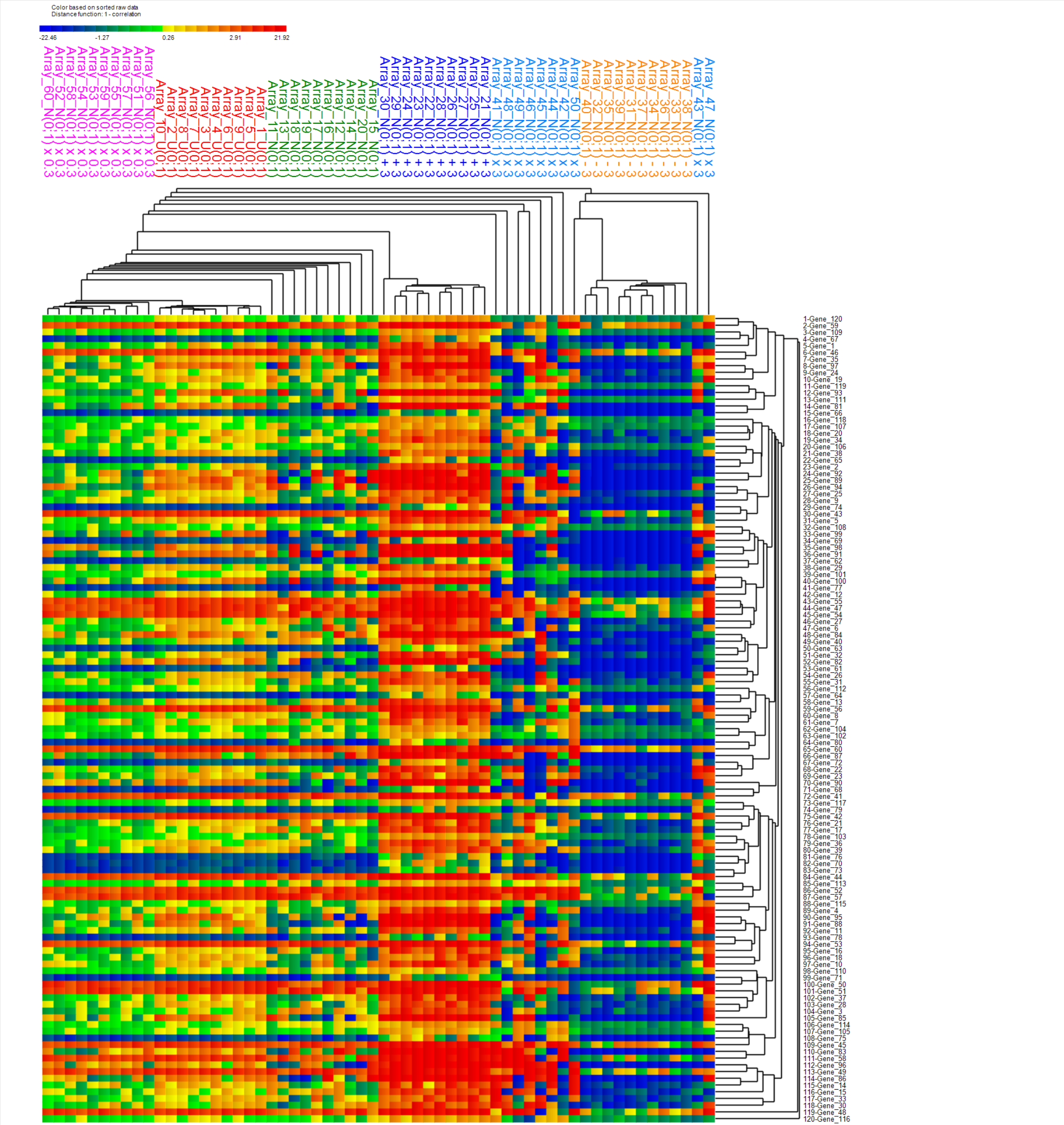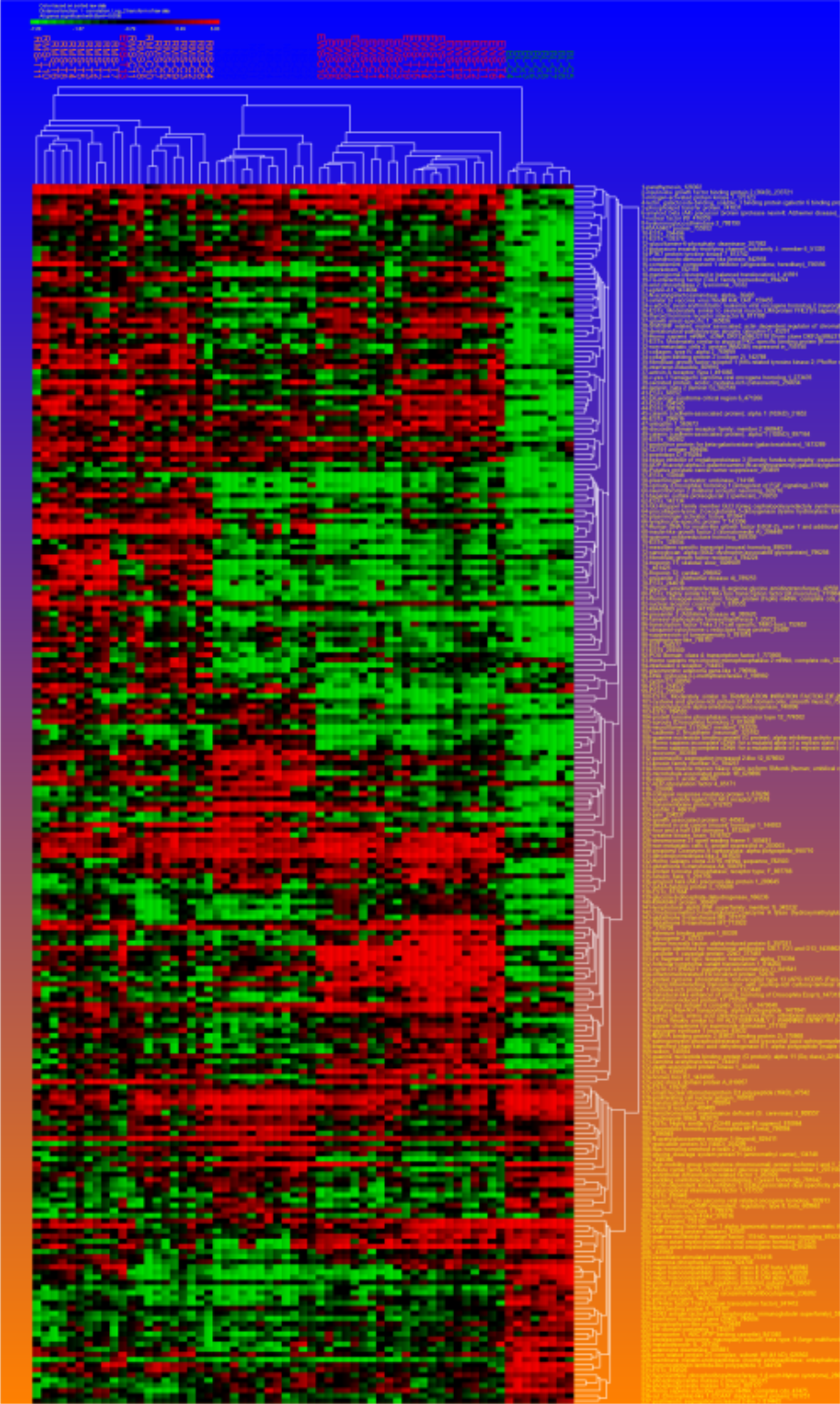 Cluster heat map for significant genes from one against all (OAA) t-test