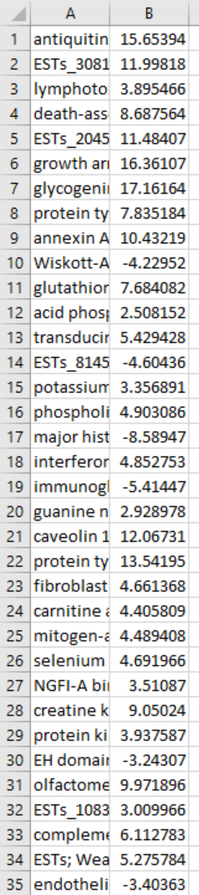 Khan et al, log_2 scale, IPA upload file with 125 genes with fold change